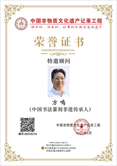 新时代非遗文化传播大使、中国书法篆刻非遗传承人