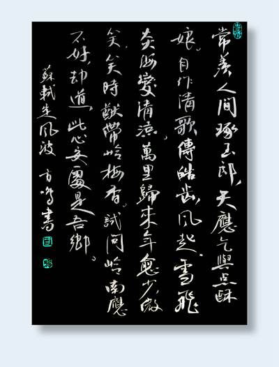 艺术创作以篆书、行书和印章篆刻为主。追求自然、古朴、平和与书卷之气,注重“印外功夫”。